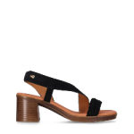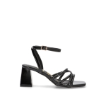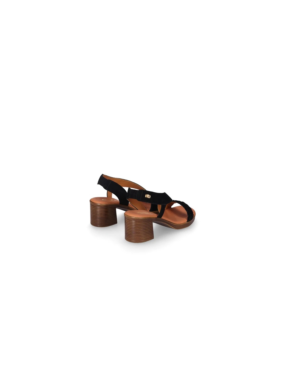 Sandalia de tacón de mujer. Con múltiples tiras y una cruzada a modo de agarre con elástico al tobillo, con efecto piel vuelta, esta sandalia combina un tacón de altura media efecto madera. ¡Camina con confianza y estilo en cada ocasión!