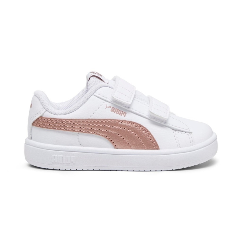 Zapatillas de la marca PUMA, modelo Rickie Classic 394254. Exterior textil técnico color blanco-Rosa. Cierre con velcro
